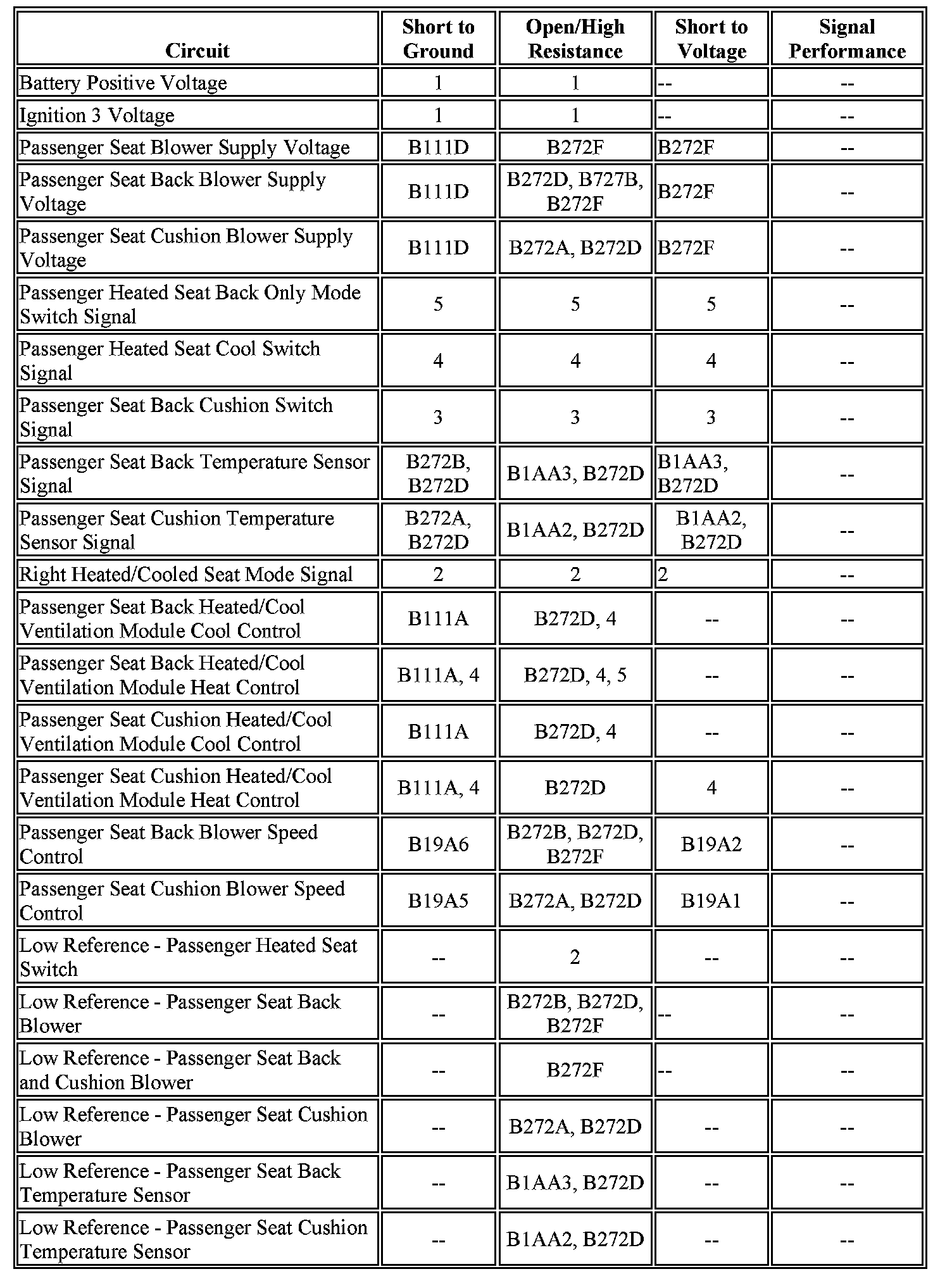 - The CCSM detects a short to B+ on the passenger seat back blower speed control circuit.