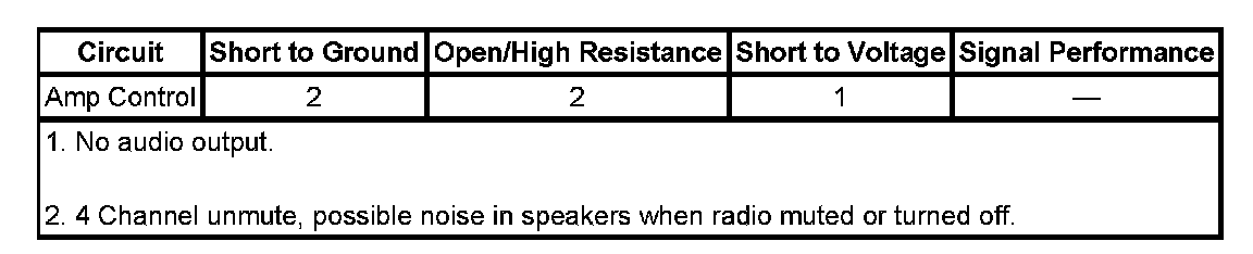 Amplifier Control Signal Circuit Short to Ground
