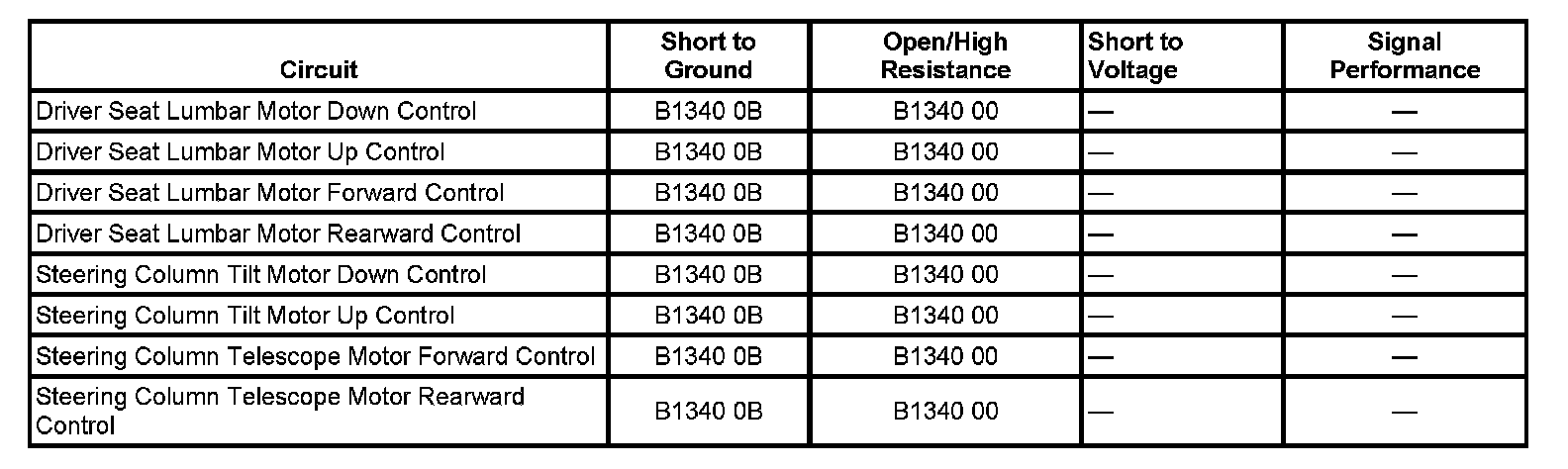- If the DTC set current or history, test the motor control circuits for a short to ground, a high resistance short to ground, or an open/high resistance. If the circuits test normal, replace the driver position module.