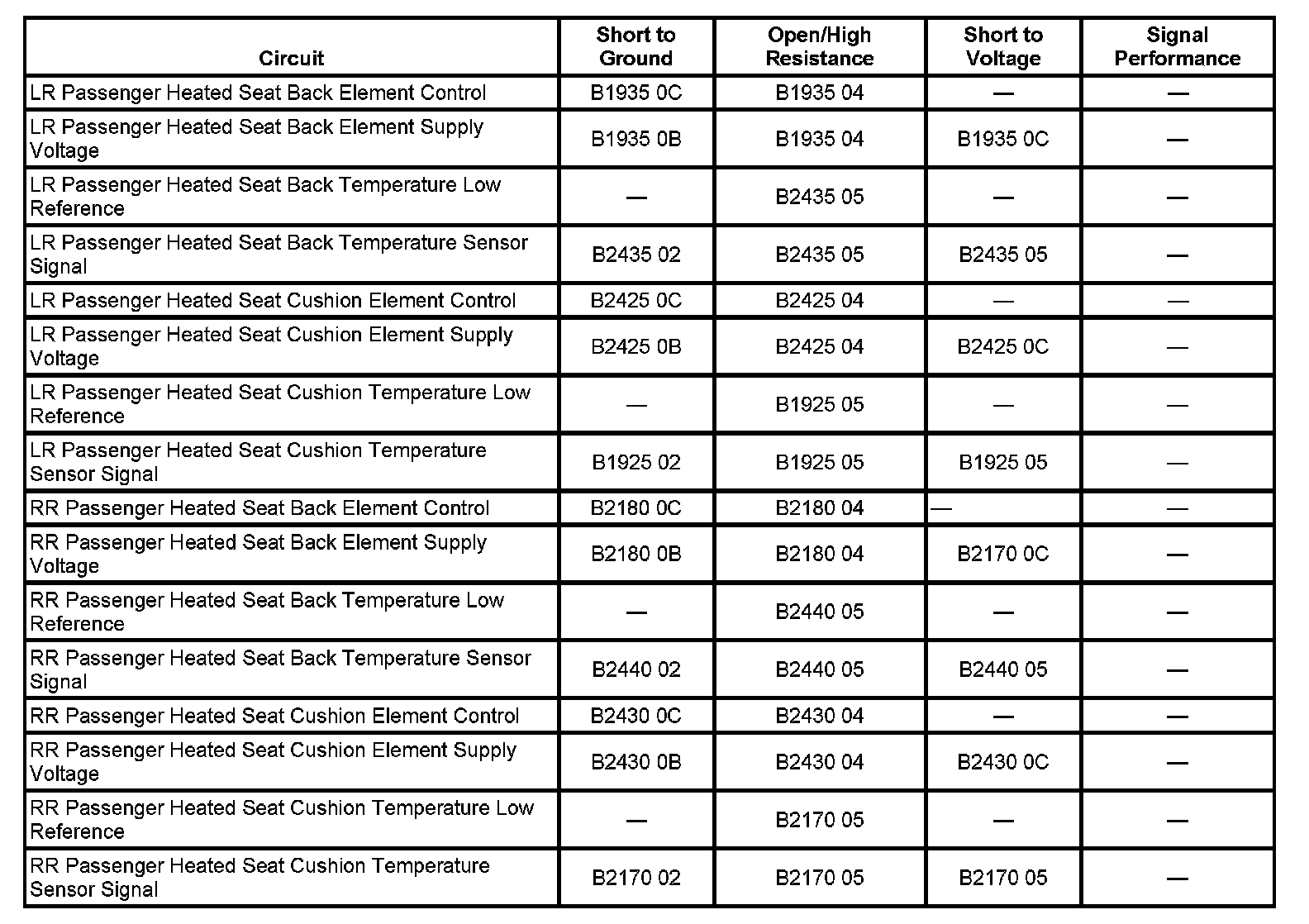 - DTC B2170 05 Right Seat Heater Cushion Sensor Circuit Shorted to Battery or Open