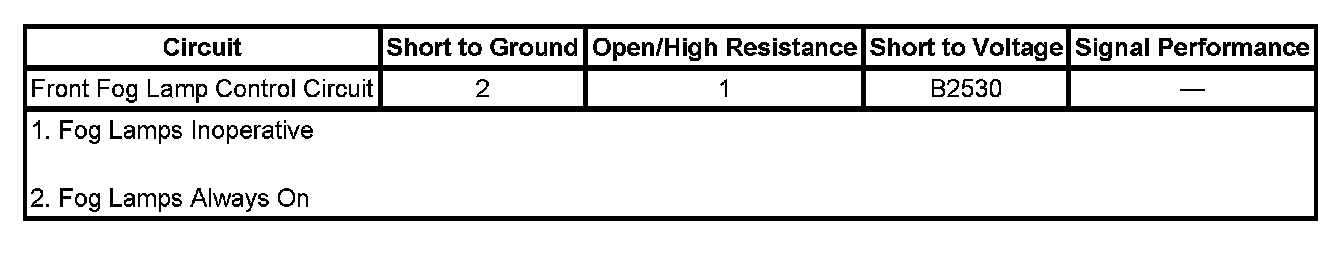 DTC B2530 00: Front Fog Lamp Control Circuit