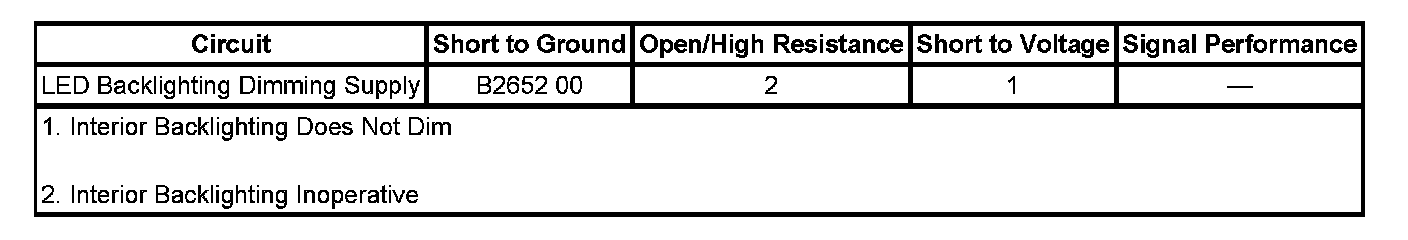 DTC B2610 00: Passenger Compartment Dimming 1 Circuit