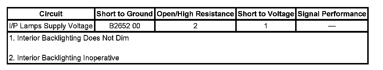 1. Clear the DTC. Headlamp switch OFF, disconnect all interior lamps dimming related components. Verify DTC B2652 does not set.