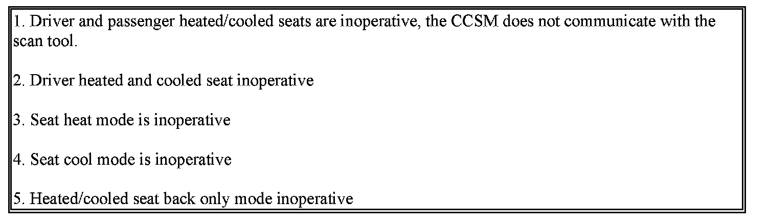 The CCSM will disable the heat or cool seat function for the current ignition cycle.