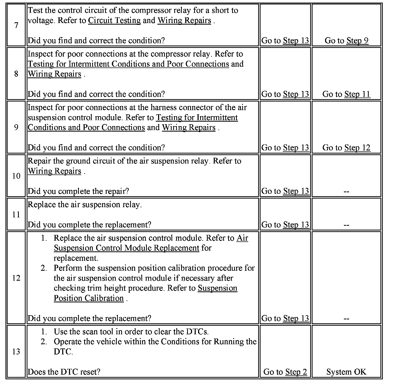 4. This step tests for an open in the ground circuit to the air suspension relay.