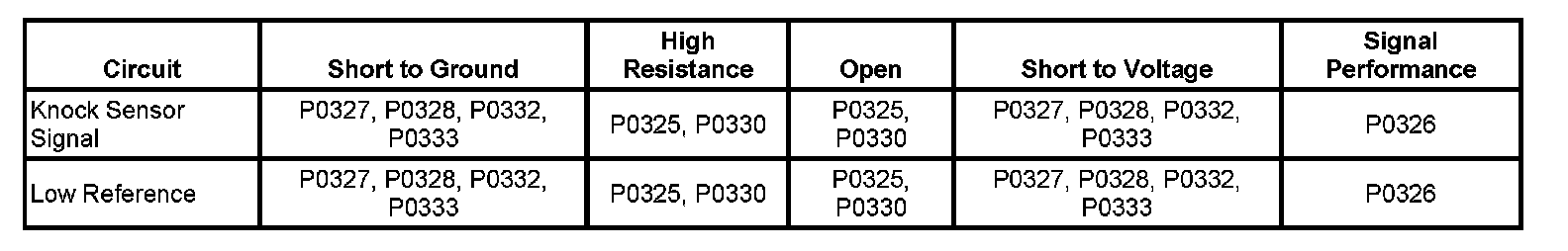 DTC P0325, P0327, P0328, P0330, P0332, and P0333