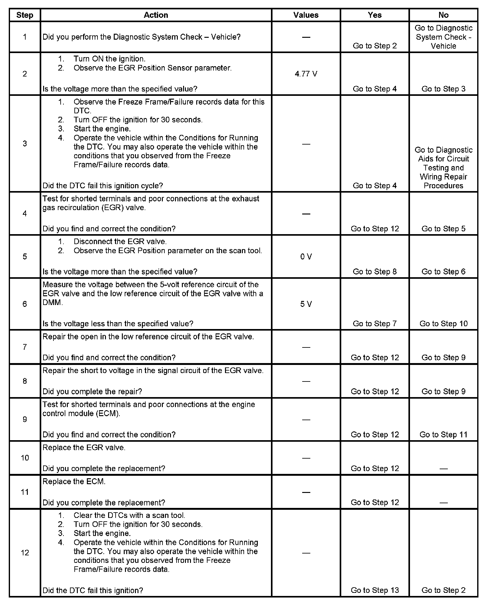 DTC P0406 Exhaust Gas Recirculation (EGR) Position Sensor Circuit High Voltage