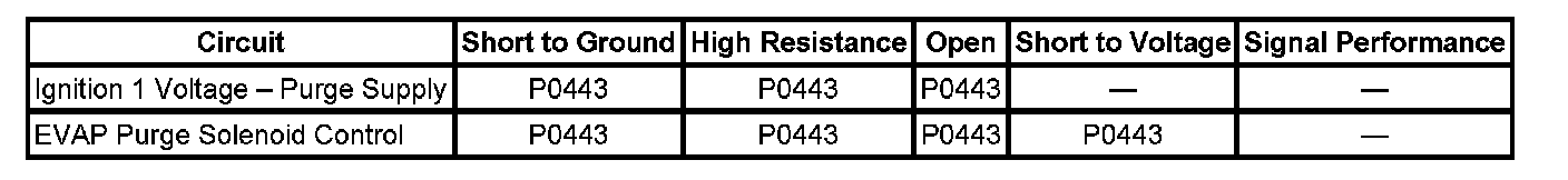 - If the test lamp does not flash or illuminate with the command, test the control circuit of the EVAP canister purge solenoid valve for an open or for a short to voltage.