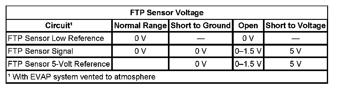 The fuel tank pressure (FTP) sensor measures air pressure or vacuum in the evaporative emission (EVAP) system. The control module supplies a 5-Volt reference and a low reference circuit to the FTP sensor. The FTP sensor signal voltage varies depending on EVAP system pressure or vacuum. The controller also uses this FTP signal to determine atmospheric pressure for use in the engine-off small leak test, DTC P0442. Before using this signal as an atmospheric reference it must first be re-zeroed.
