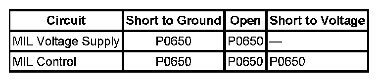 - The MIL lamp must be commanded OFF for an open or short to ground.