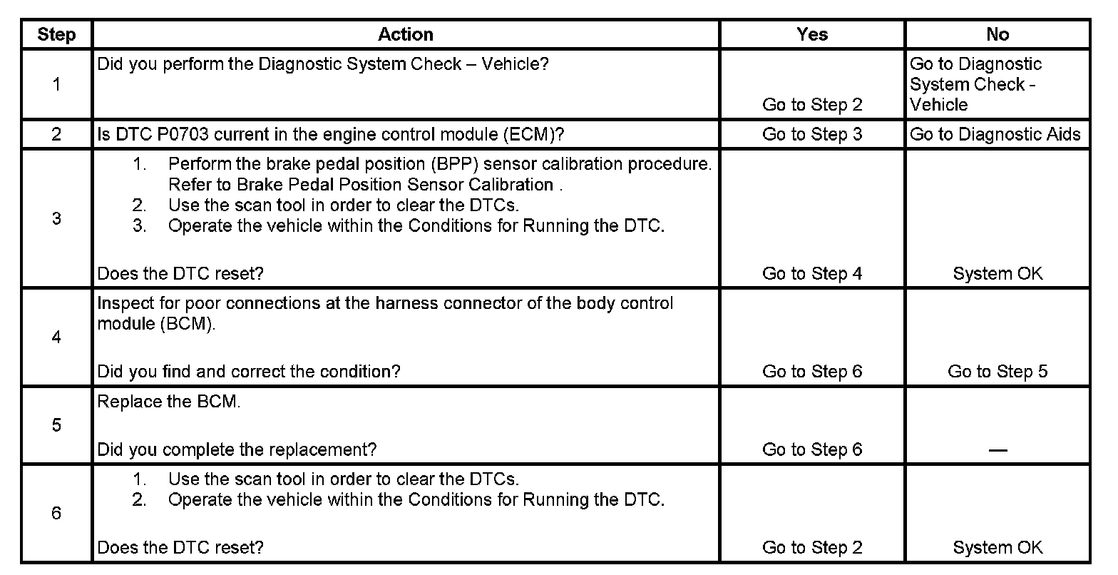 2. This step is performed in order to confirm that DTC P0703 is current within the ECM.