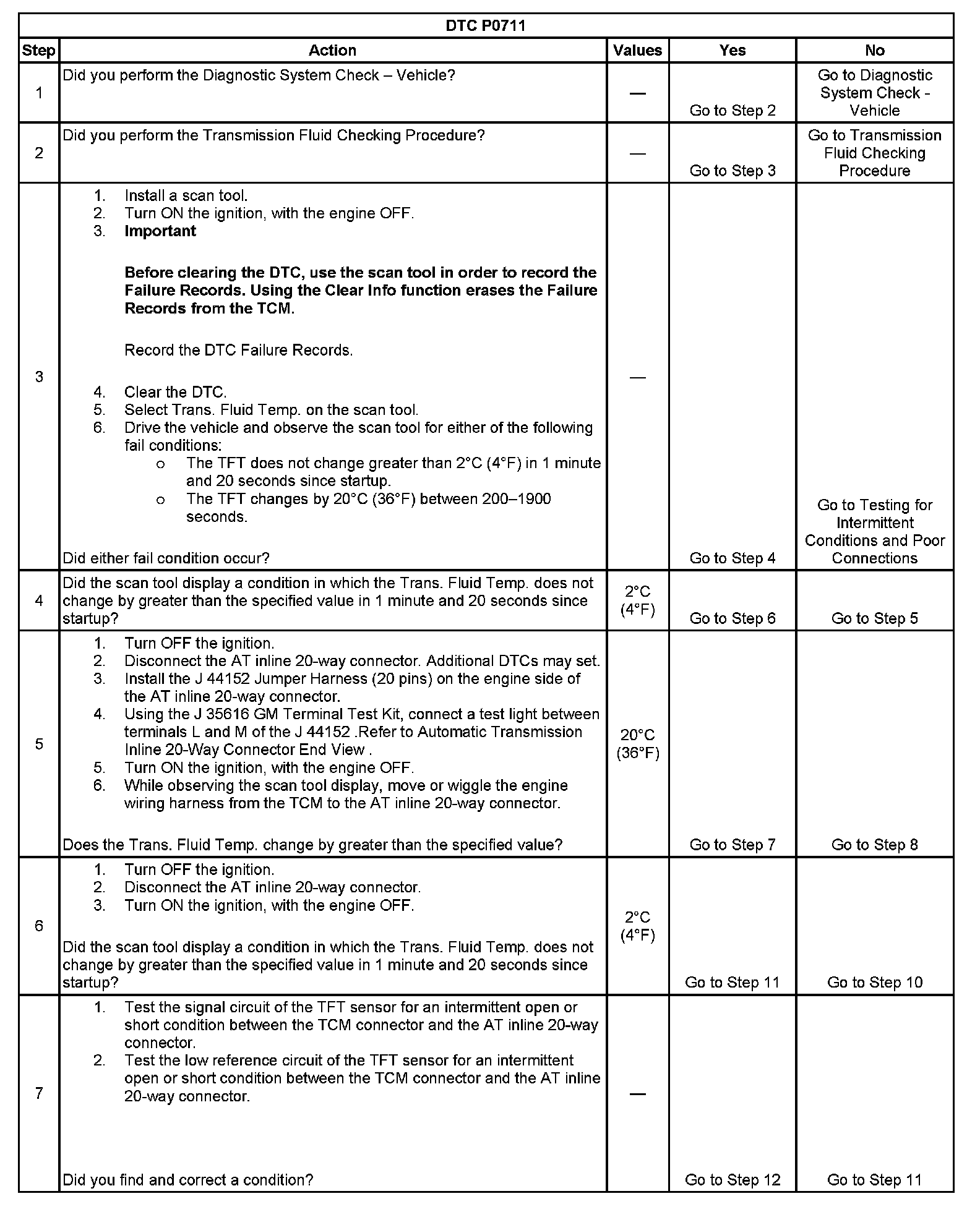 ^ The TCM stores DTC P0711 in TCM history.