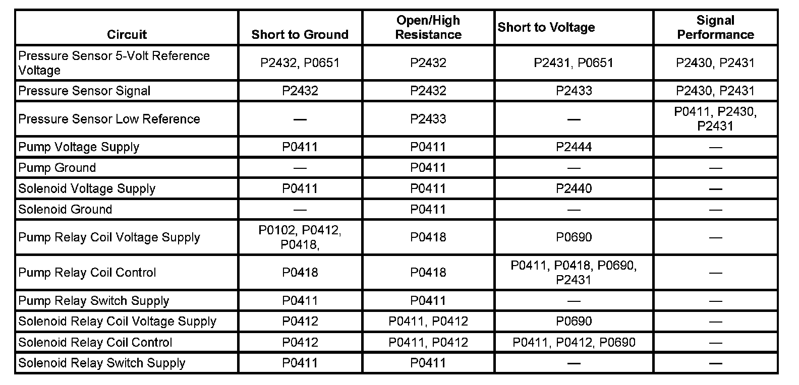 Secondary Air Injection (AIR) System Pressure Sensor Circuit High Voltage