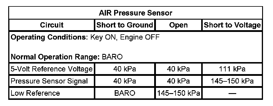 - If more than approximately 40 kPa, test the signal circuit for a short to voltage. If the circuit test normal, replace the control module.