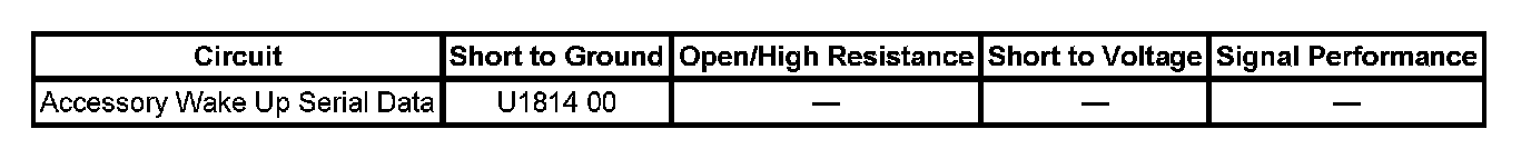 - If less than infinite resistance, repair the accessory wake up serial data circuit for a short to ground.