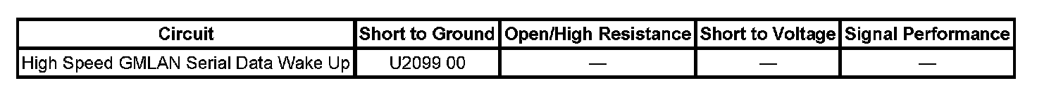 The BCM senses a short to ground on the high speed GMLAN serial data wake up circuit.