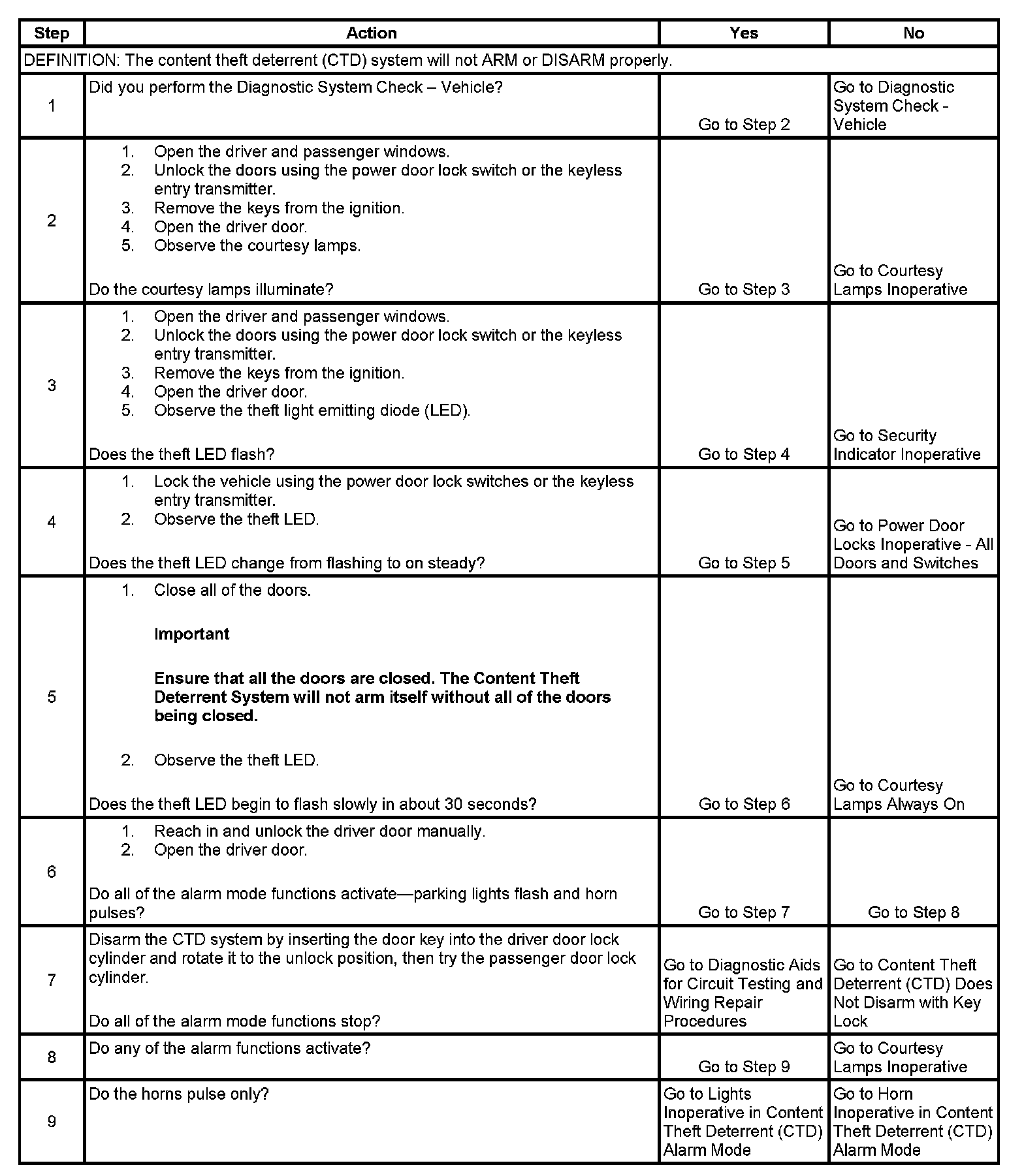 Content Theft Deterrent (CTD) Alarm Mode Inoperative