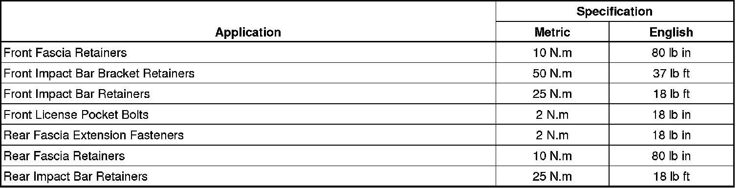 Bumper: Specifications