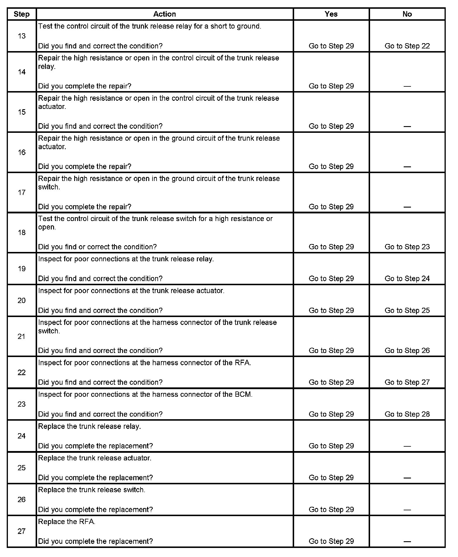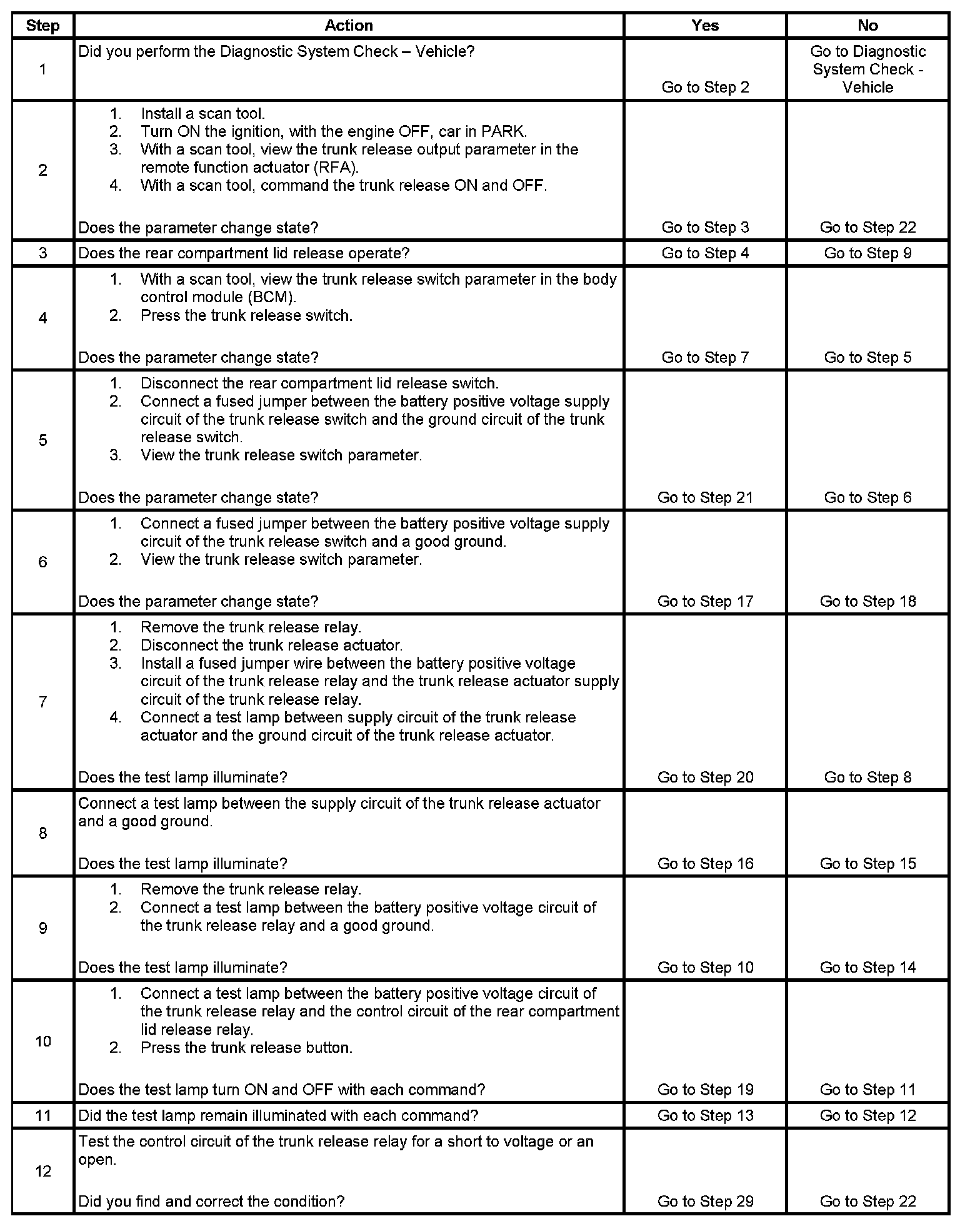 Trunk Release Inoperative
