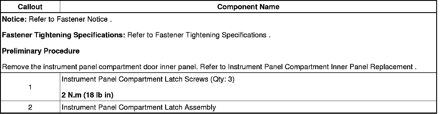 Latch Replacement - Instrument Panel (I/P) Compartment