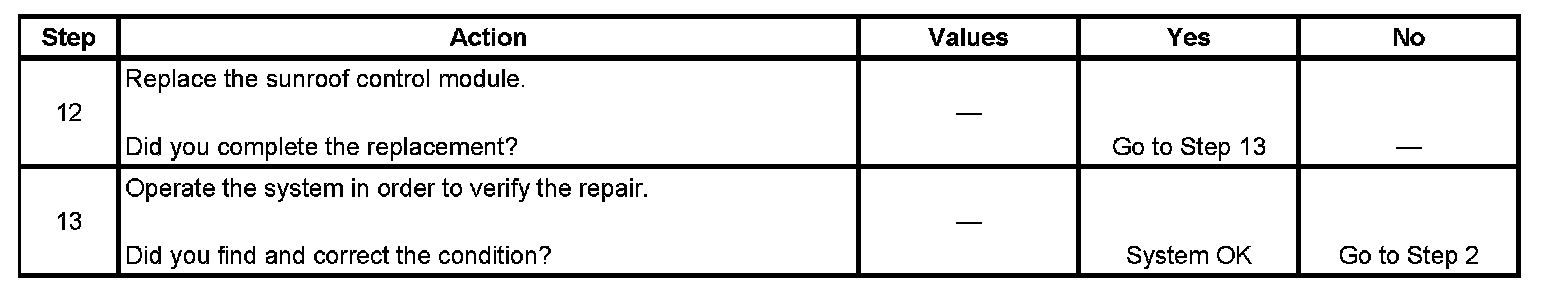 If the sunroof is experiencing an intermittent inoperative condition, check the sunroof switch ground circuit for an open. If the sunroof switch ground circuit is open, the switch may take a redundant path to ground through the switch illumination circuit. When the lights are turned On, the redundant path to ground is removed and the sunroof will become inoperative.