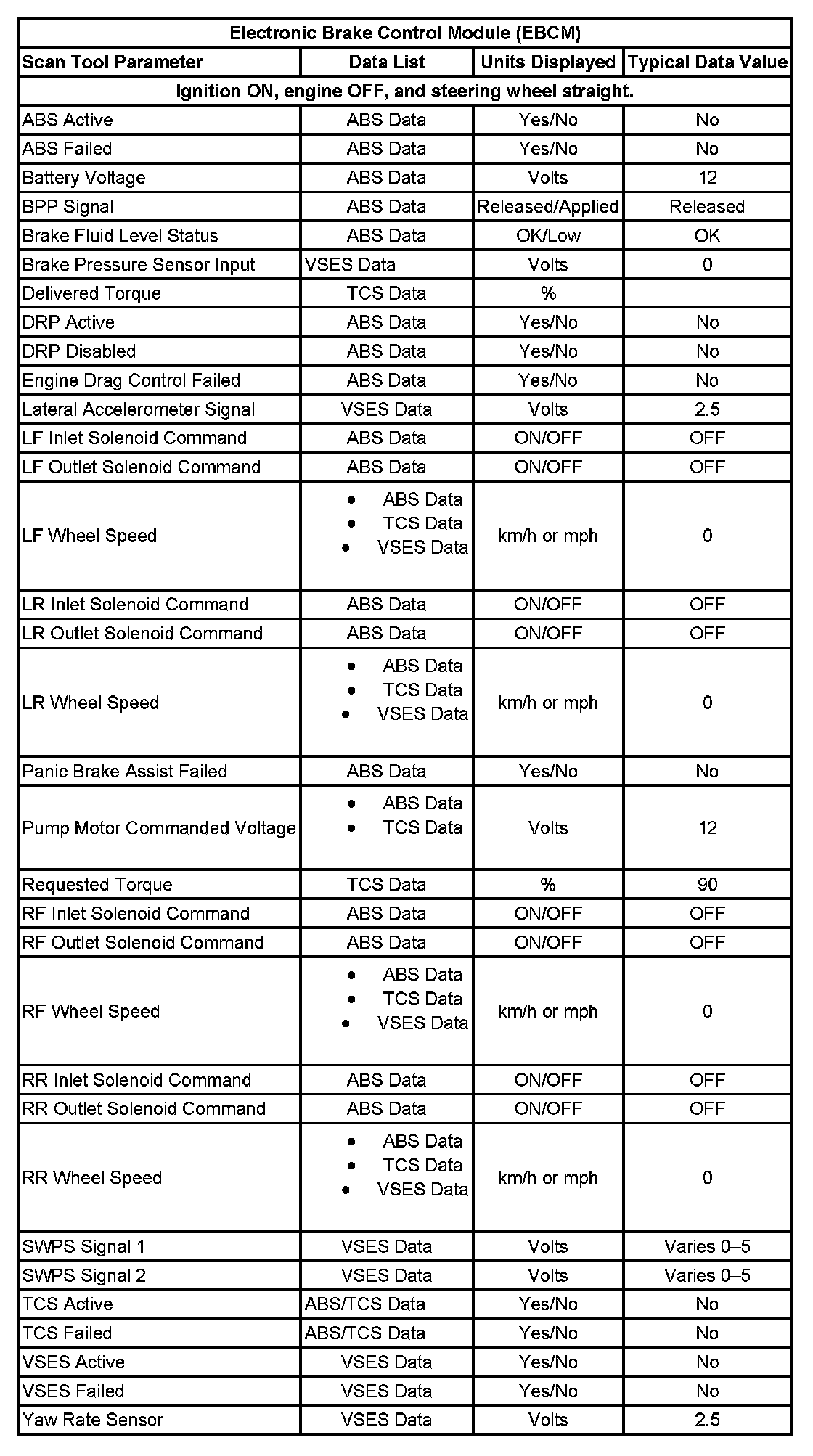 Scan Tool Data List