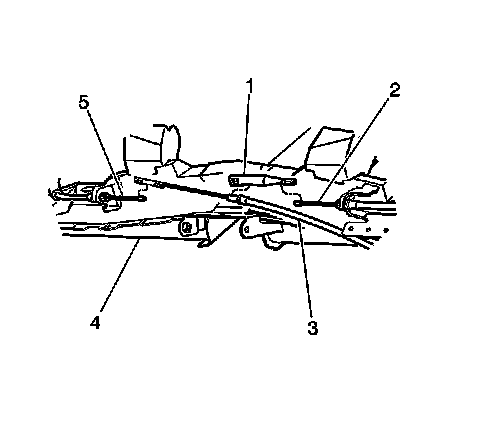 5. Disconnect the intermediate park brake cable (3) from the right rear park brake cable (5).