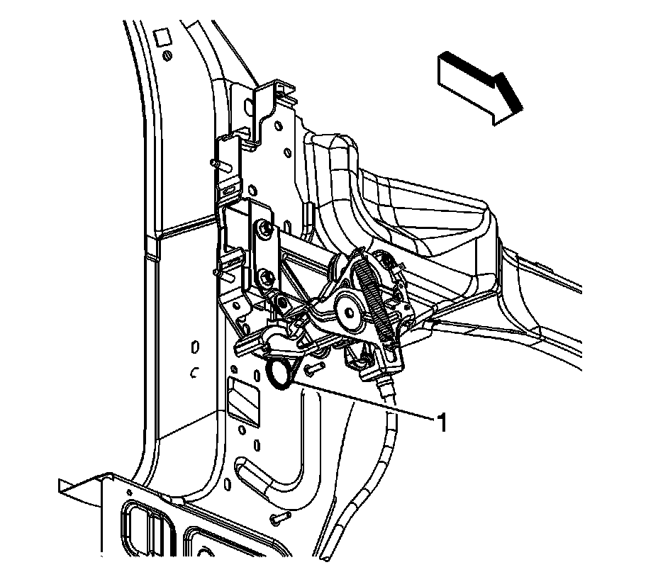 7. If installing a new park brake pedal assembly, you must remove the park brake pedal and cable set pin (1).
