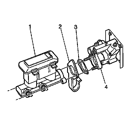 12. Install the master cylinder (1) to the booster assembly (4).
