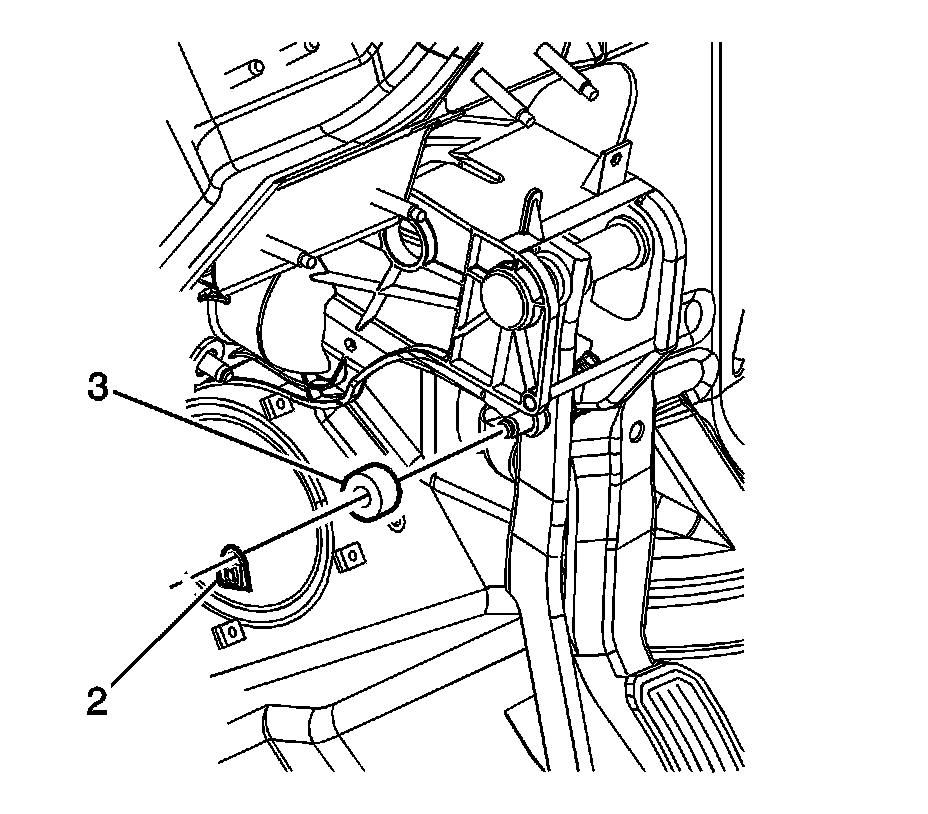 14. Remove the foam spacer (3) from the brake pedal clevis pin.