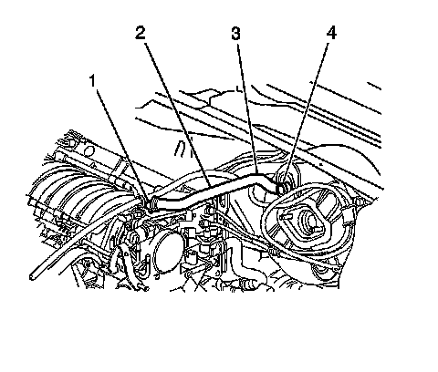 3. Disconnect the vacuum hose (2) from the intake manifold (1).
