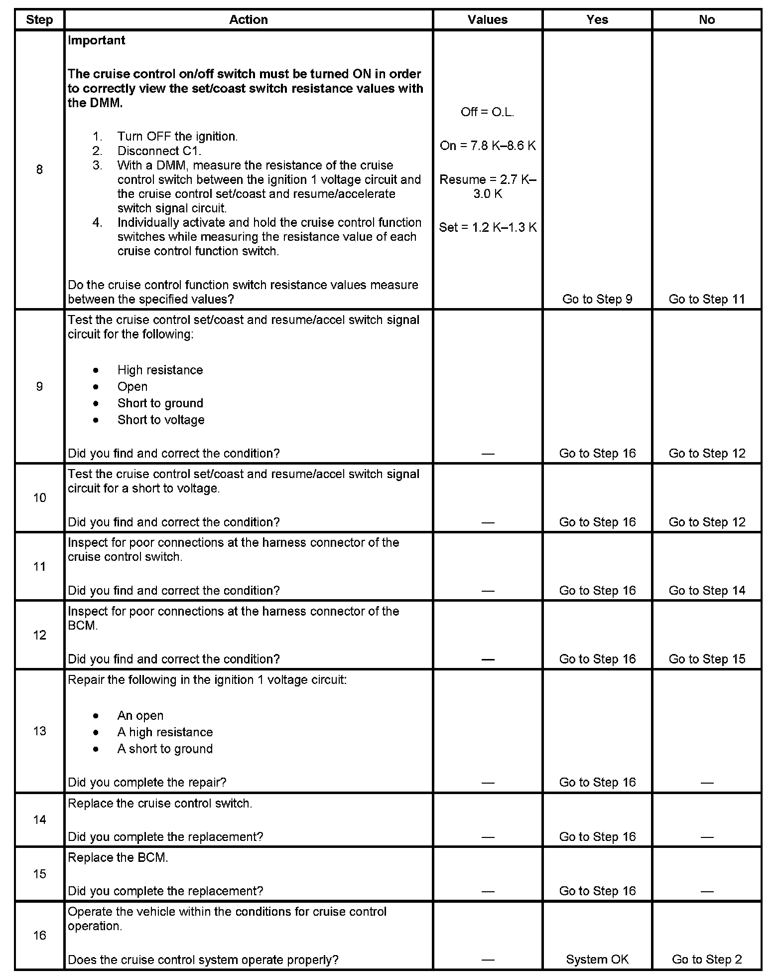 Cruise Control Inoperative/Malfunctioning