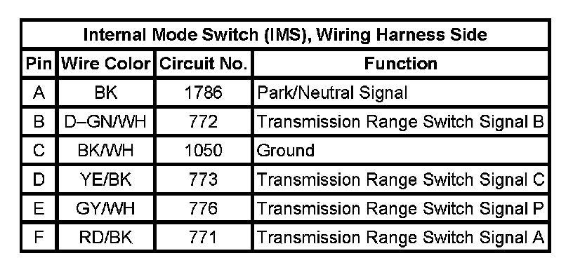 Internal Mode Switch (IMS), Wiring Harness Side: