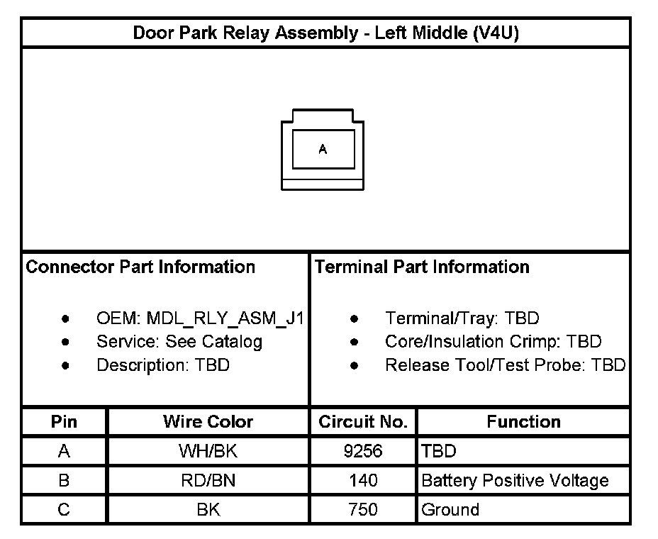 Door Park Relay Assembly - Left Middle (With RPO Code V4U)