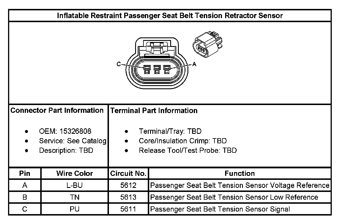 Inflatable Restraint Passenger Seat Belt Tension Retractor Sensor: