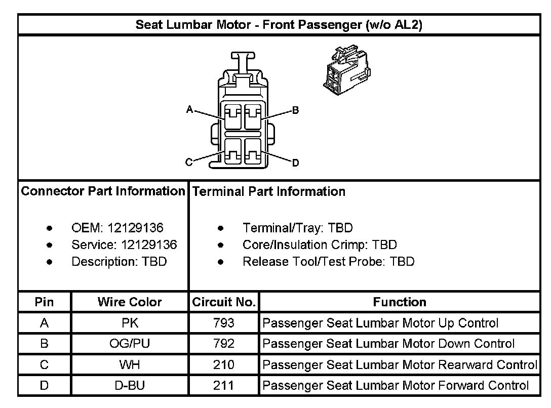 Seat Lumbar Motor - Front Passenger (Without RPO Code AL2):