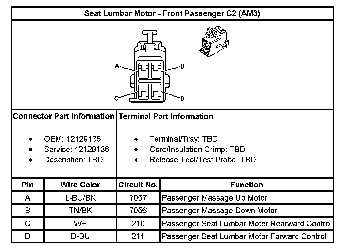 Seat Lumbar Motor - Front Passenger C2 (With RPO Code AM3):