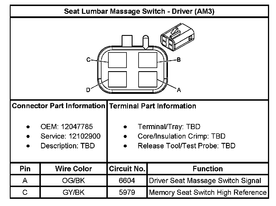 Seat Lumbar Massage Switch - Driver (With RPO Code AM3):