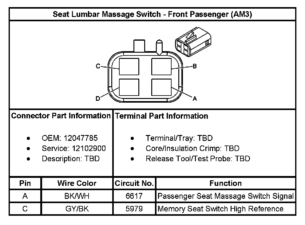 Seat Lumbar Massage Switch - Front Passenger (With RPO Code AM3):