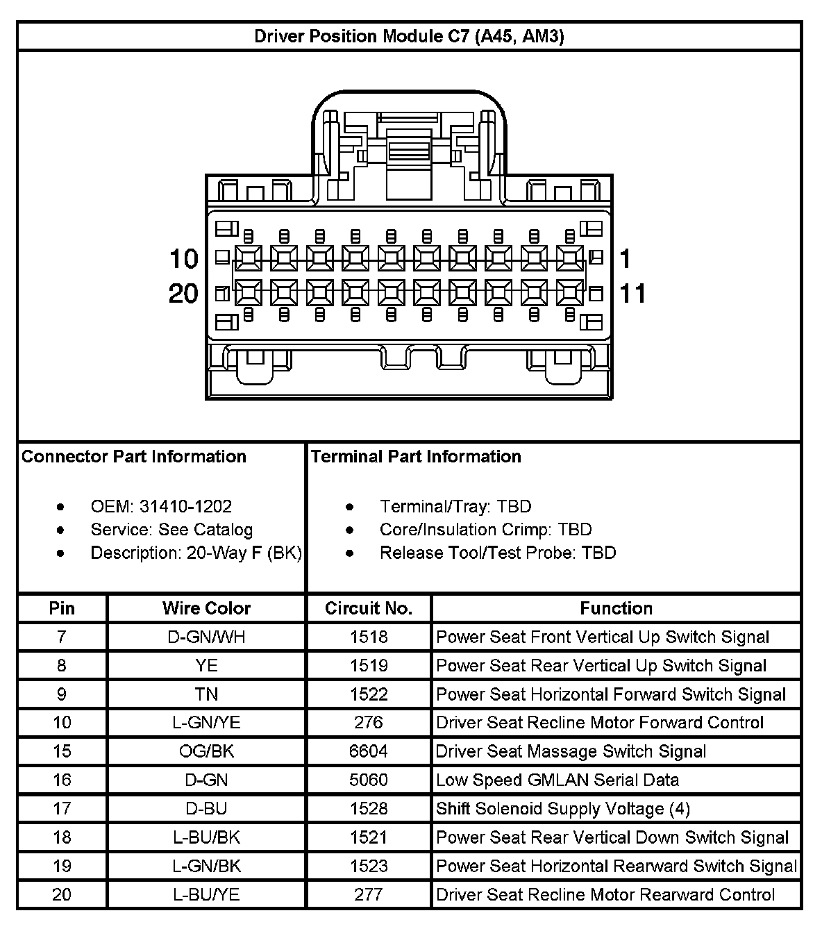 Driver Position Module C7 (With RPO Code A45, AM3):
