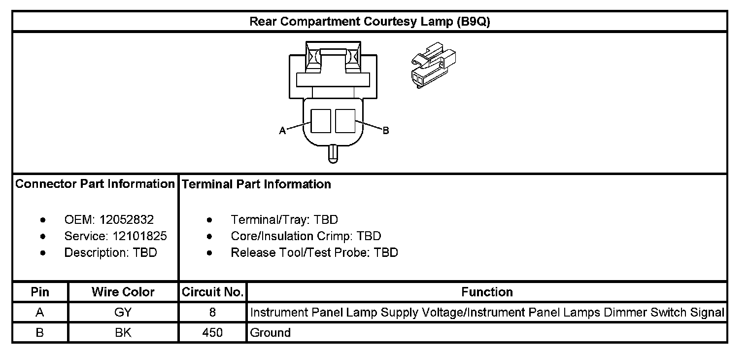 Rear Compartment Courtesy Lamp (With RPO Code B9Q):