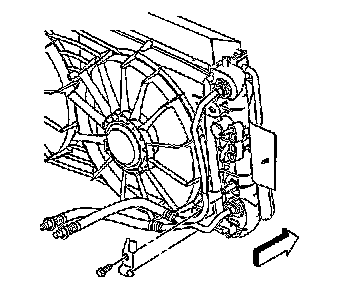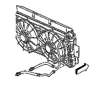1. Position the cooling fan assembly towards the left side of the vehicle.
