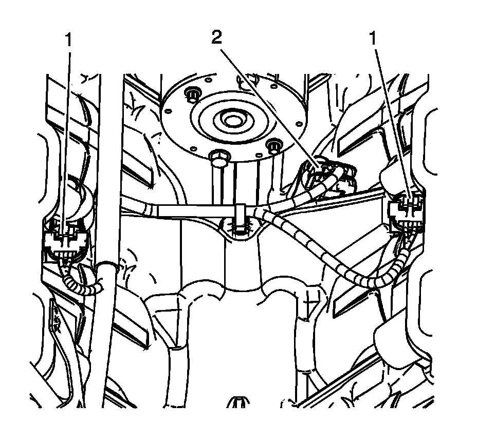 19. Connect the crankshaft position sensor wiring harness to the CKP sensor (2).
