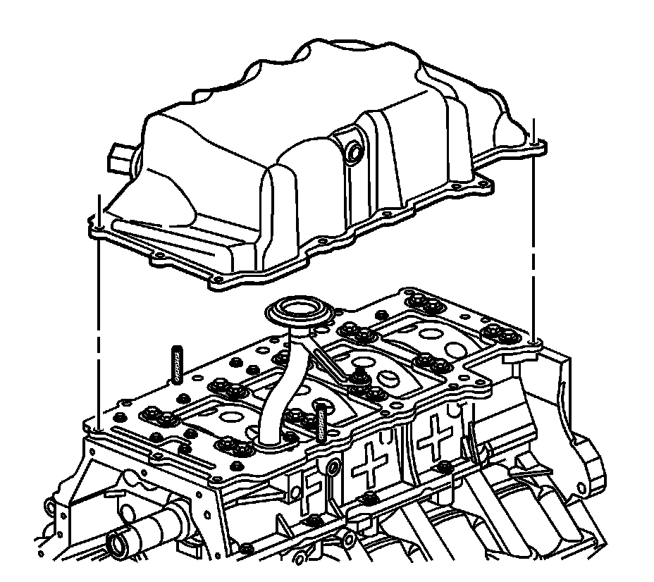4. To prevent shifting of the oil pan, install one EN 46109 into a bolt hole in each side of the lower crankcase.