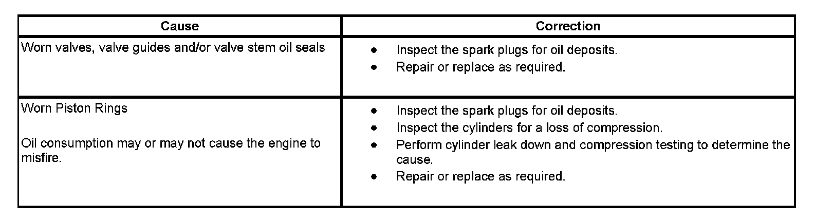 Base Engine Misfire with Excessive Oil Consumption