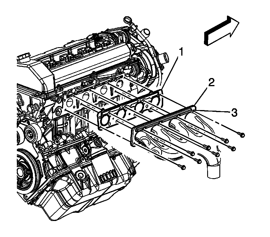 8. Remove and discard the exhaust manifold gasket (1).