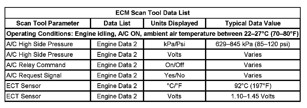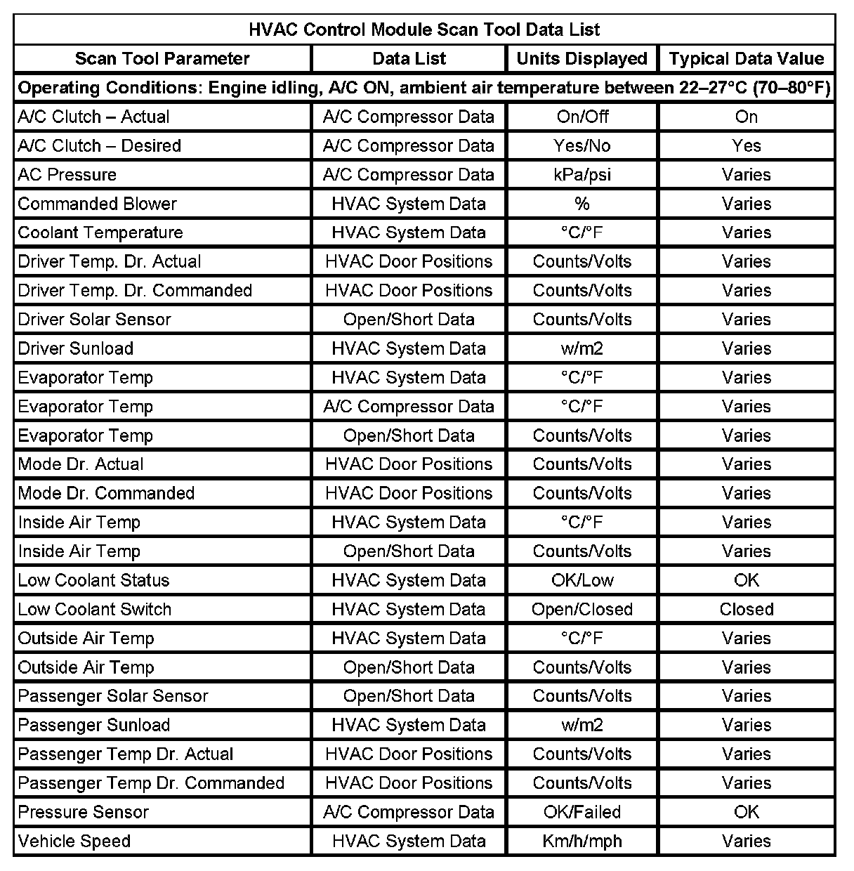 HVAC Control Module Scan Tool Data List:
