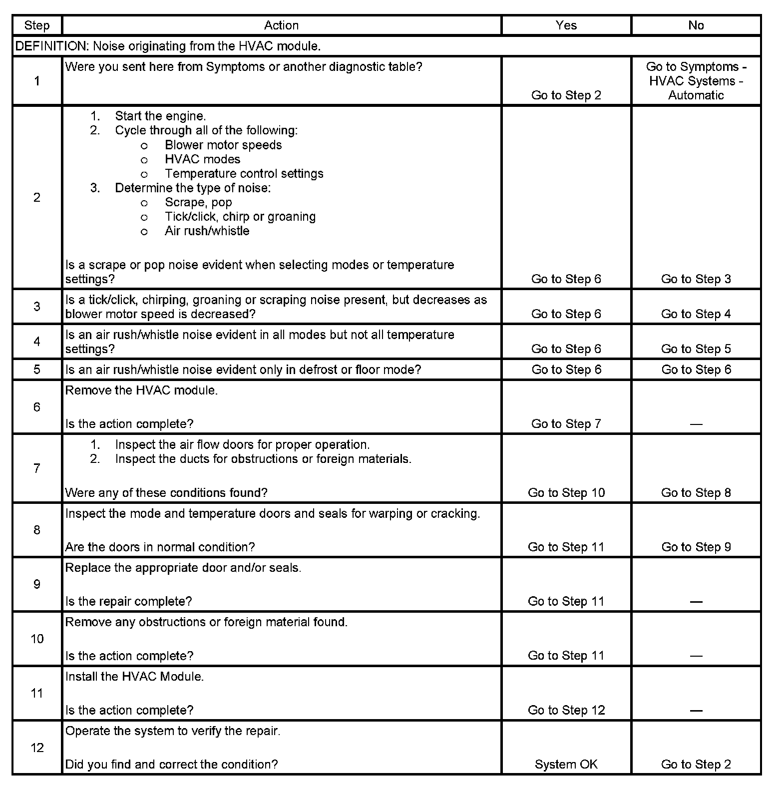 Noise Diagnosis - HVAC Module