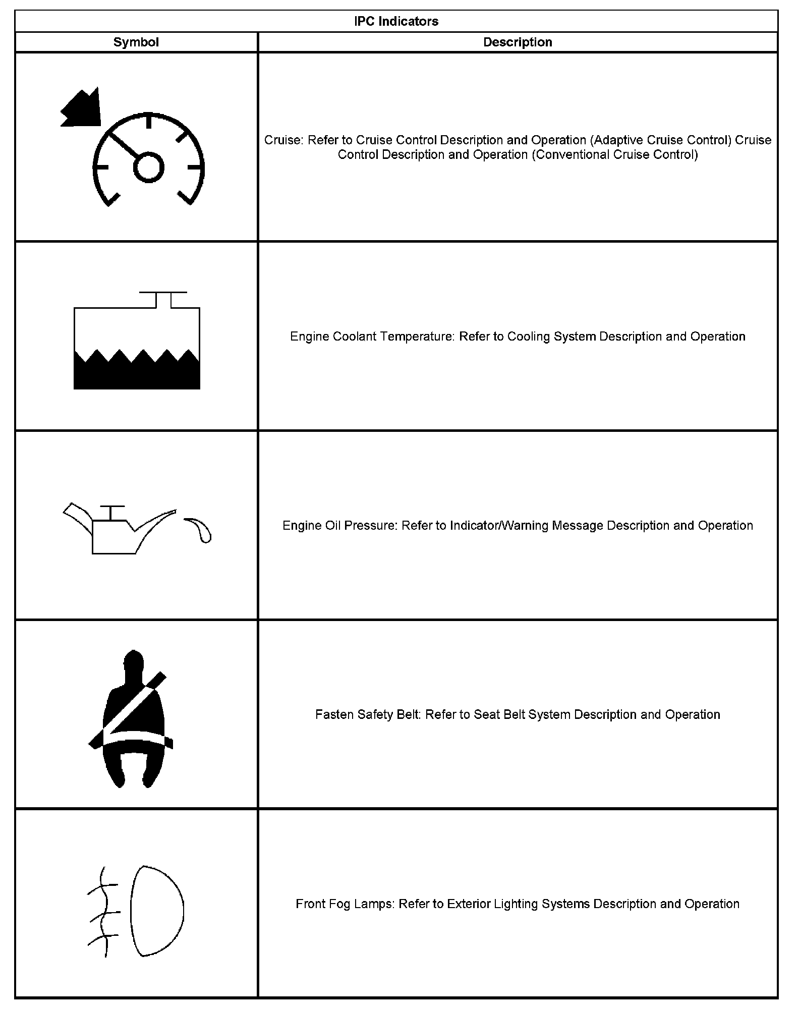 The driver information center (DIC) displays ICE POSSIBLE for 10 seconds when the outside air temperature drops below 2.0°C (36°F). The instrument panel cluster (IPC) receives a GMLAN message indicating the outside air temperature from the HVAC control module