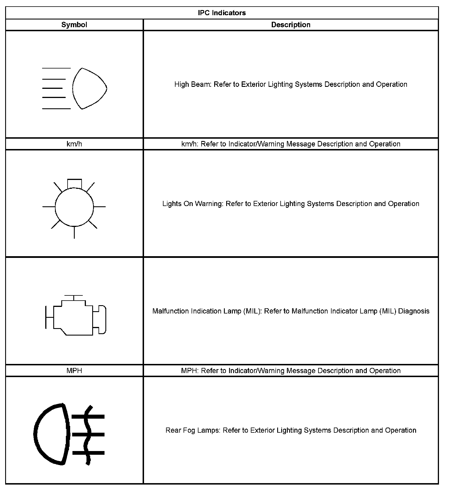 The IPC displays the MPH indicator when the cluster detects that English units have been requested.